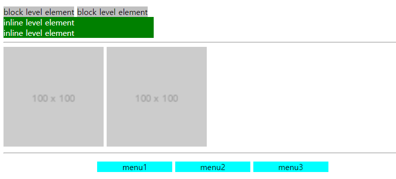 ⇨ 줄바꿈 없이 한 줄에 다른 요소들과 나란치 배치